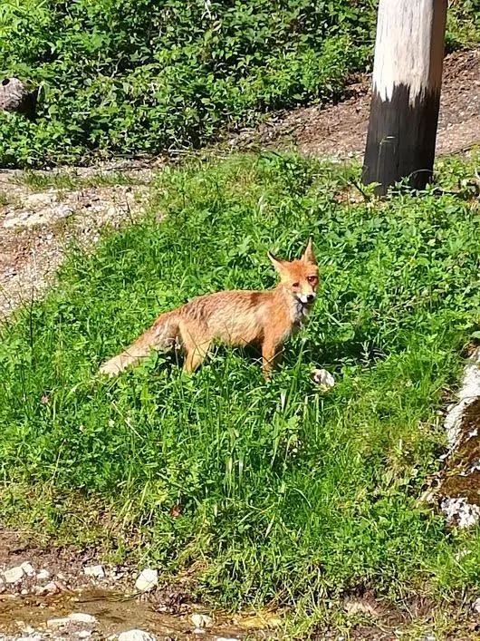 Pe traseu am intalini si o vulpe care nu sa speriat de noi, ba dinpotriva sa apropiat de noi cat mai mult pana iam dat ceva de mancare.
